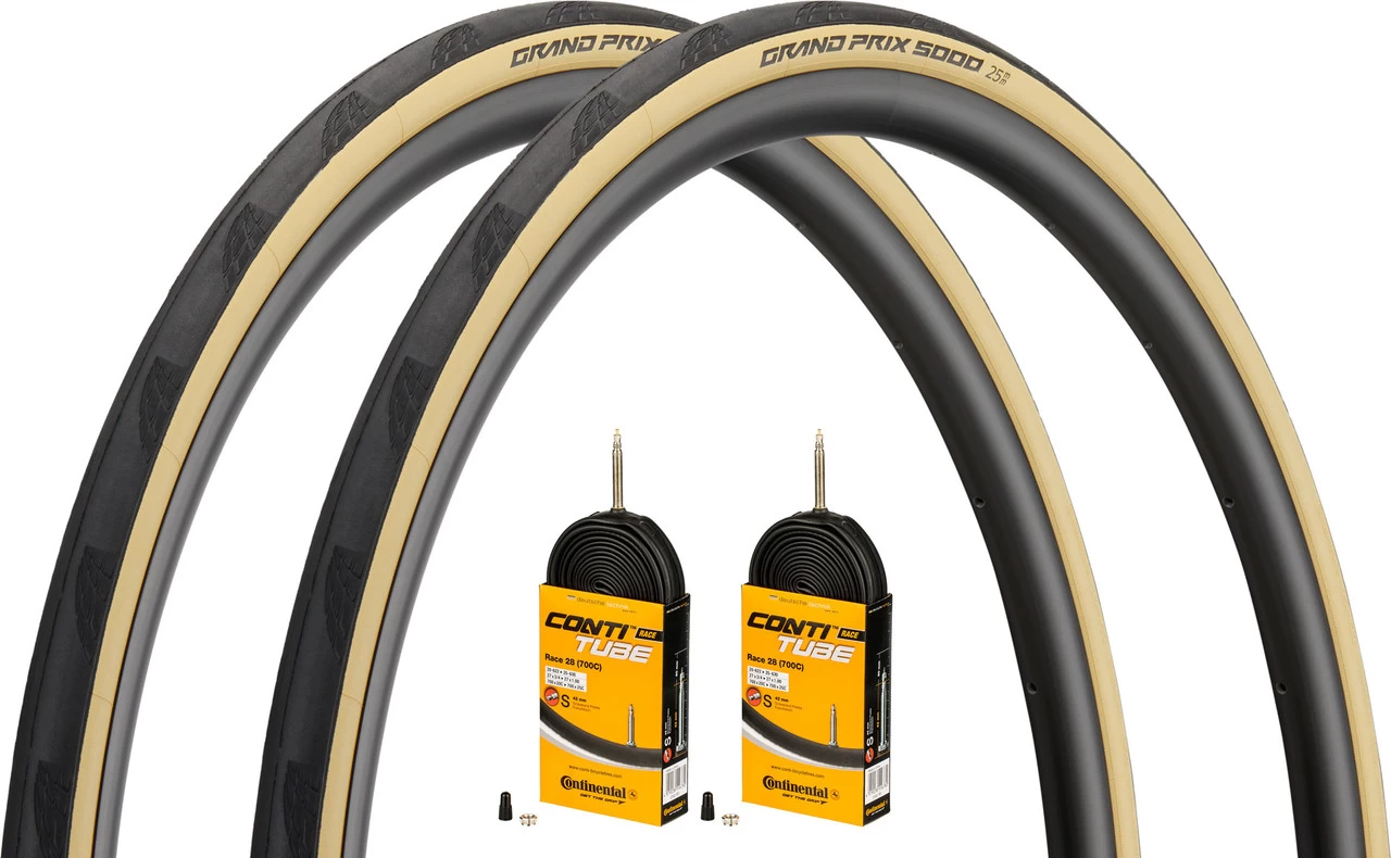 Ce set de deux comprend deux nouveaux pneus Grand Prix 5000 ainsi que deux chambres à air Race 28. La chambre à air standard de Continental est le meilleur compromis pour les exigences de la vie de tous les jours.