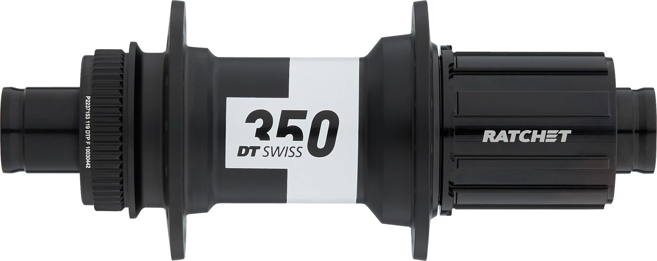 Ce moyeu arrière pour VTT 350 de DT Swiss est conçu pour être utilisé avec des rayons J-Bend classiques et un disque de frein Center Lock. Son cour est la roue libre résiliente avec le système Ratchet 36 avec des poulies dentées précises. Grâce au concept No-Tool, le moyeu peut être facilement entretenu, sans que des outils ne soient nécessaires. Ses capuchons sont formés de manière à permettre un démontage simple et, surtout, rapide. C’est un avantage en particulier lors de compétitions, mais la possibilité de démonter rapidement les roues est également bien pratique si tu possèdes deux paires de roues que tu utilises en fonction du parcours ou des conditions. Le solide corps de moyeu, en aluminium, et les roulements en acier garantissent une longue durée de vie. Le jeu des roulements a été minimisé et optimisé. Cela est réalisé préchargeant les roulements lorsque le moyeu n’est pas fixé dans le cadre. La fixation par l’intermédiaire de l’axe traversant libère la précharge et permet aux roulements de coulisser au maximum. Grâce à des joints de précision, les roulements sont également très bien protégés contre l’humidité et la saleté.
