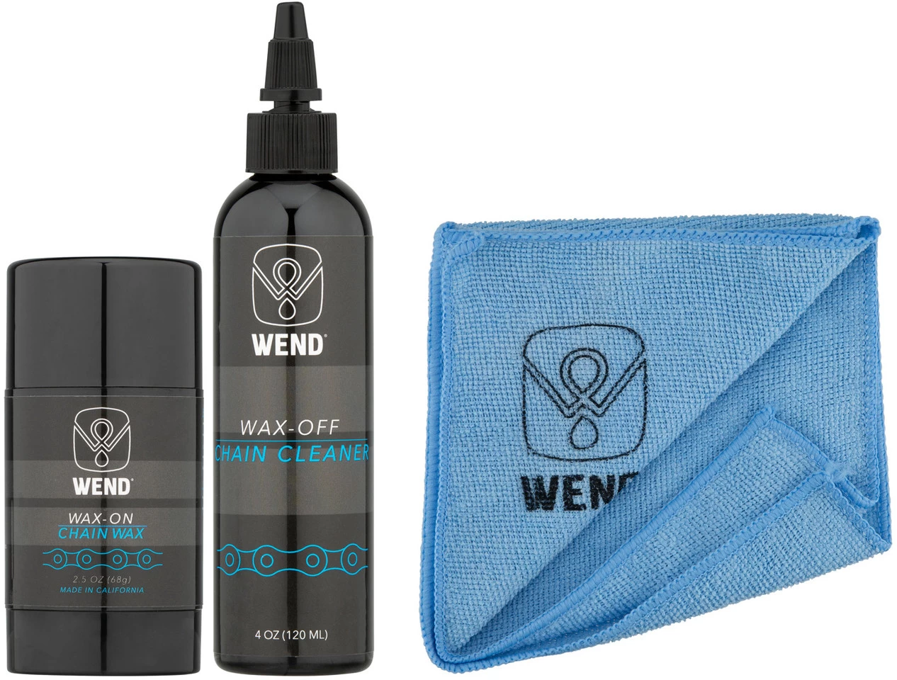 Contenu :1 x 120 ml de nettoyant pour chaîne WEND Wax Wax-OFF1 x 80 ml de cire pour chaîne WEND Wax Wax-ON1 x chiffon microfibres Tuch