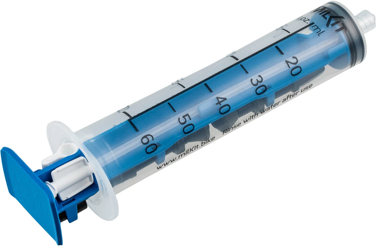 Utilisation :Dévisser l’obus de la valve MilKit : l’air reste dans le pneuInsérer l’applicateur milKit à travers de la valve dans le pneu et mesurer le fluide d’étanchéitéContrôler la quantité et la qualité du fluide d’étanchéitéRemplir la quantité de remplissage requise de la même manièreRevisser l’obus de la valve dans la valveContenu :1 x seringue de mesure et de remplissage MilKit2 x valves tubeless milKit1 x tuyau de raccordement milKit1 x extracteur de valve milKit1 x outil milKit pour obus de valvesans fluide d’étanchéitésans ruban de jante