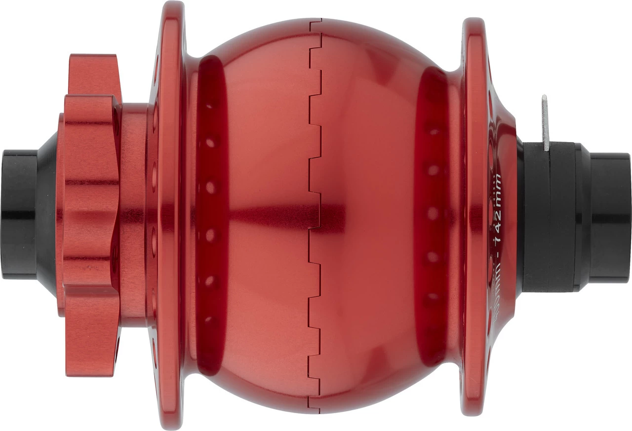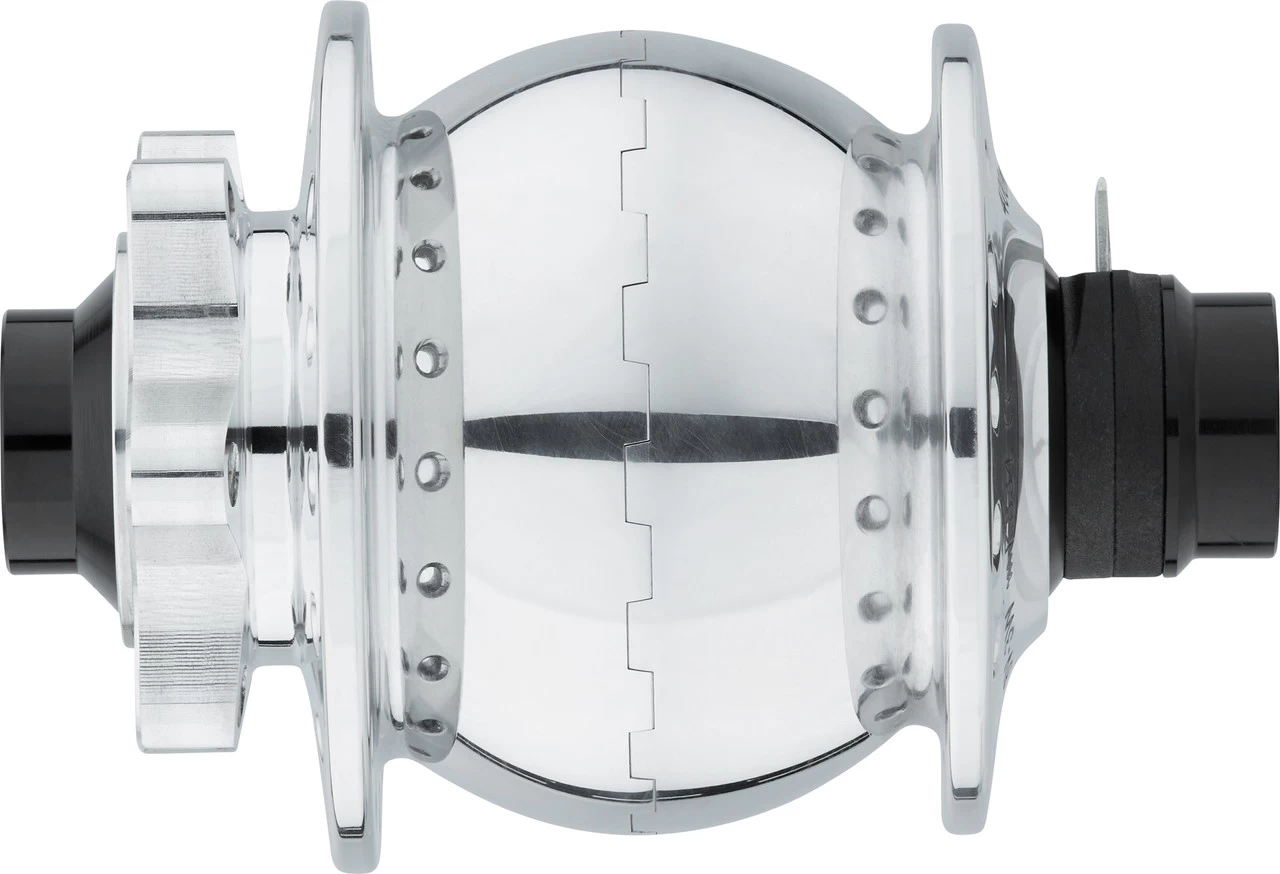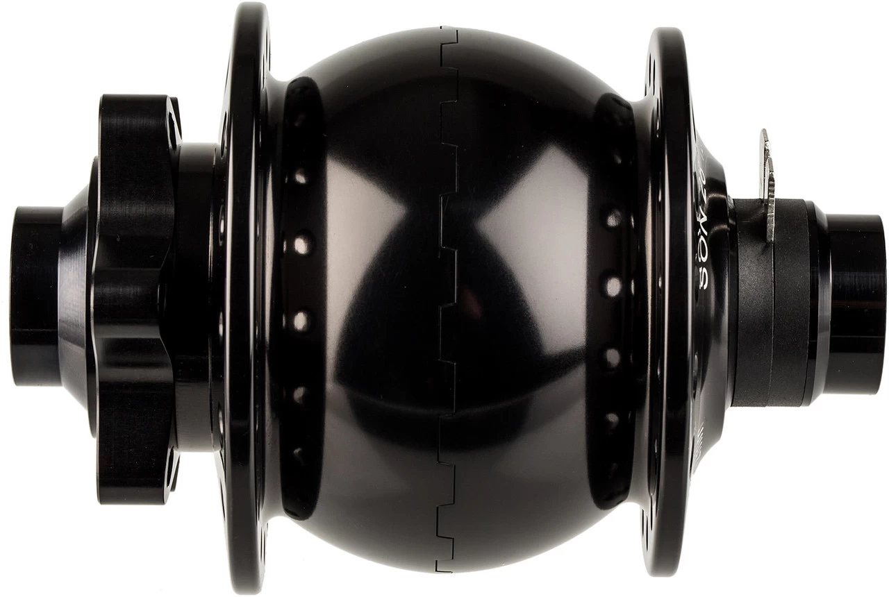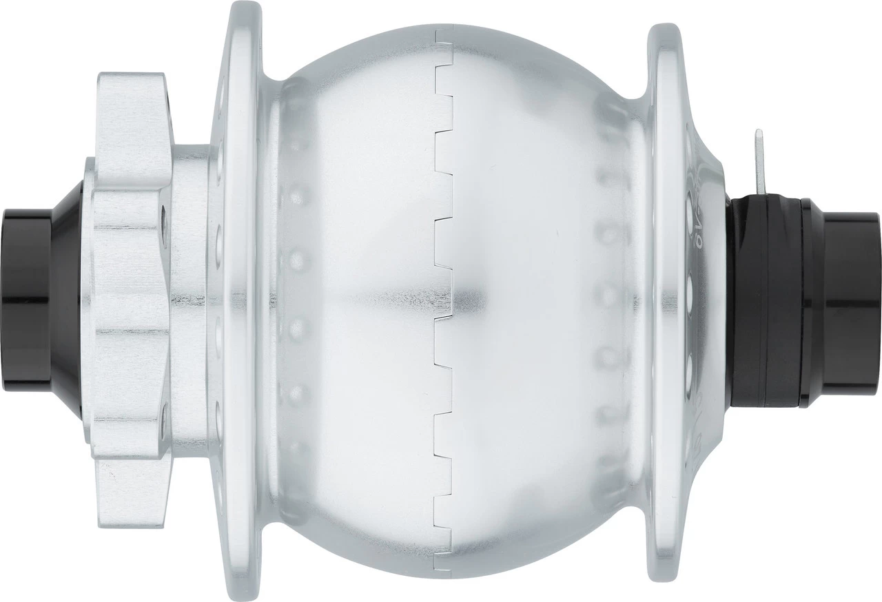Moyeu à dynamo ou axe traversant ? Jusqu’à présent, le cycliste exigeant devait se passer de l’un d’entre eux. L’axe traversant rigidifie la fourche de suspension et permet un positionnement plus précis du moyeu, ce qui est particulièrement utile pour les freins à disque. De plus en plus de vététistes veulent profiter des avantages d’un système d’éclairage par dynamo de moyeu. Pas étonnant donc que SON ait été de plus en plus souvent été sollicité de créer une dynamo de moyeu à axe traversant. Afin de réunir les deux sous un même toit, SON a non seulement modifié la construction de l’axe, mais aussi des parties essentielles du générateur. Résultat : un moyeu à dynamo qui a l’air et est robuste, et a les mêmes valeurs électriques que le Son 28 Disc, mais avec un « trou » plus large. De plus, le poids a pu être maintenu étonnamment bas avec 460 g.