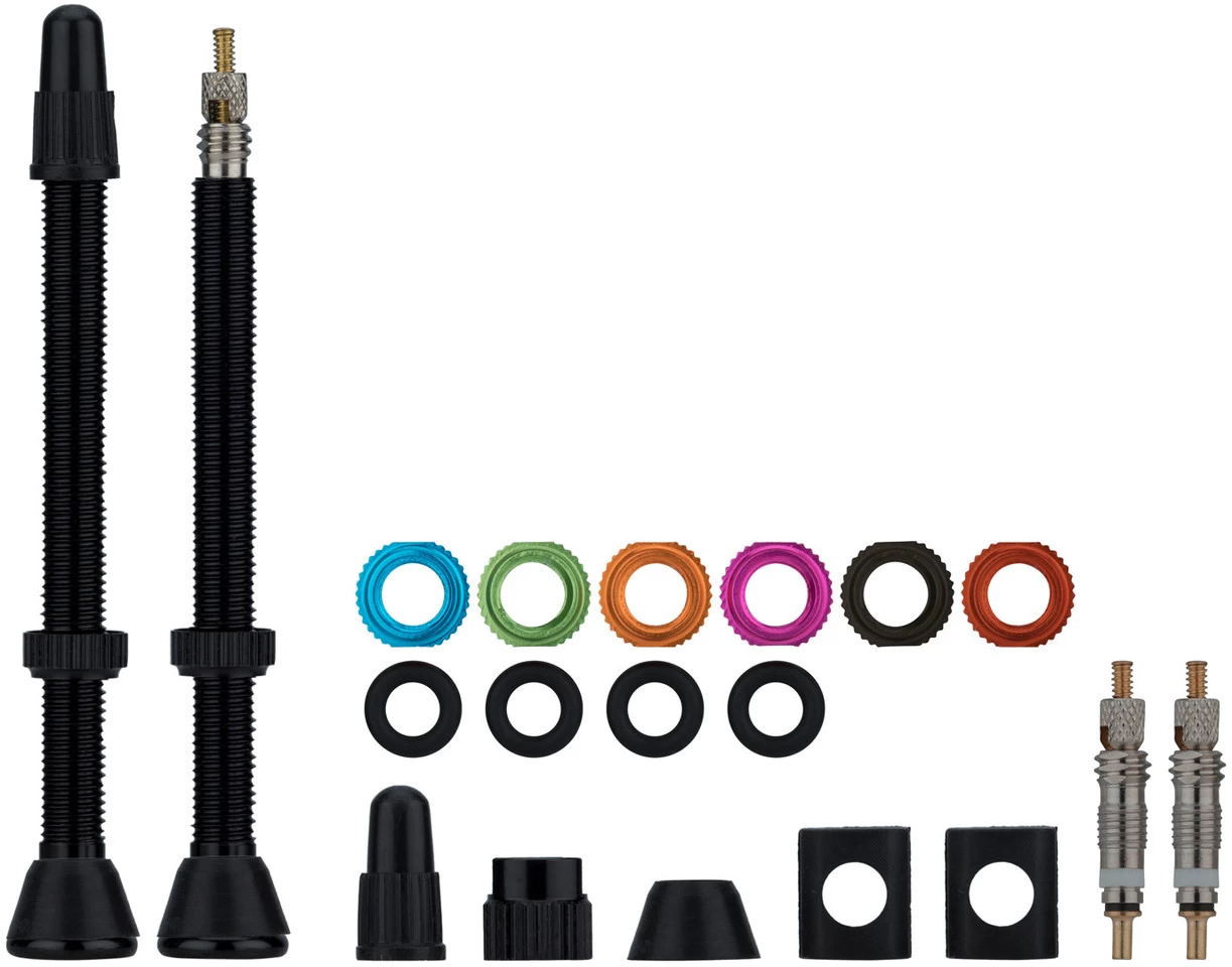 Le set de deux valves tubeless Versavalve d’Orange Seal convient à presque toutes les jantes et garantit un raccord étanche avec le fond de jante. Grâce aux anneaux en caoutchouc de forme différente, l’adaptation à la jante n’est pas compliquée. Les roues avec une paroi de jante plus haute ont également été prises en compte, c’est pourquoi les valves sont disponibles dans des longueurs allant jusqu’à 80 mm.