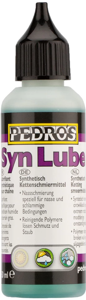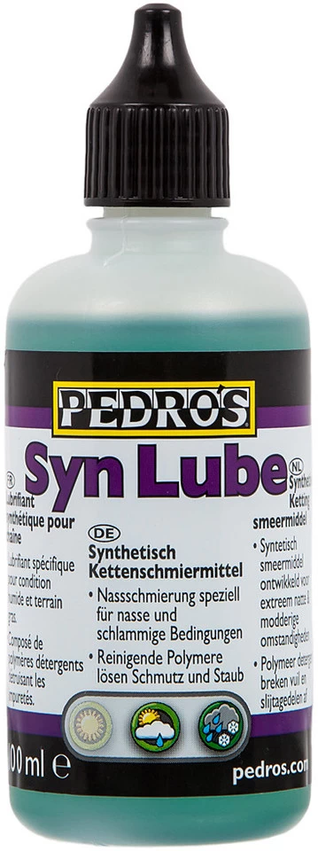 Pedros a développé le lubrifiant pour chaîne Syn Lube pour les conditions extrêmement boueuses et humides. Il contient des additifs EP, des inhibiteurs de corrosion et des agents d’adhérence pour garantir une protection contre l’usure supérieure à la moyenne et une lubrification de longue durée.