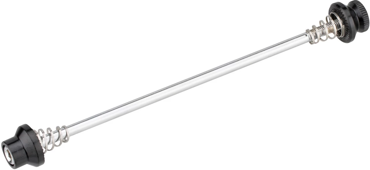 Spécifications :Largeur :roue avant : 100 mm, roue arrière : 135 mmDiamètre de l’axe :5 mmInformations techniques :Utilisation :roue avant : 9 x 100 mm, roue arrière : 10 x 135 mmType :axe de serrageMatériau de l’axe :acier (CrMo)Matériau des écrous:aluminium (6061-T6)Longueur de l’axe :115 mm (avant), 151 mm (arrière)Caractéristiques :logement d’outil : hexagone de 5 mmContenu :1 paire de serrages rapides de moyeu 3min19sec VTT