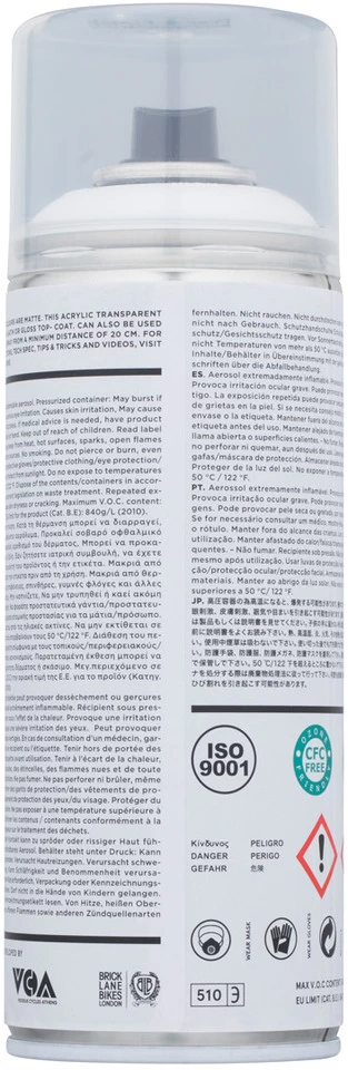 Le vernis de finition Spray Bike’s Frame Builders crée une couche de protection transparente sur la couche de peinture colorée de ton vélo. Aspect brillant, satiné ou simplement un film protecteur mat ? Avec la laque de finition Frame Builders, tu obtiendras l’effet désiré.