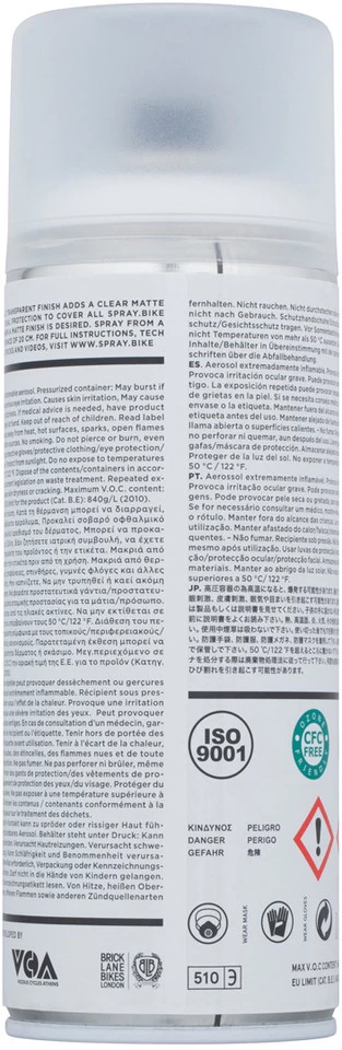 Quantité:400 mlEmballage:flacon vaporisateurContenu :1 x vernis de finition Spray.Bike Frame Builders