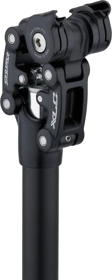 Spécifications :Utilisation :City, Touring & Trekking, All Mountain, GravelDiamètre :27,2 mm, 30,9 mm, 31,6 mmLongueur :350 mmRetrait :25 mm (comprimé)Informations techniques :Fixation :fixation par vis simple (Single Bolt)Rails compatibles :7 x 7 mm (standard)Matériau :aluminium (6061)Caractéristiques :tige de selle à ressort amortissant les chocs pour soulager la colonne vertébraleconstruction en parallélogramme avec ressort interchangeablela suspension préinstallée est adaptée pour les cyclistes pesant 65 – 95 kgbagues en laiton résistant à la corrosionVersions :27,2 mm / 350 mm / SB 25 mm :
